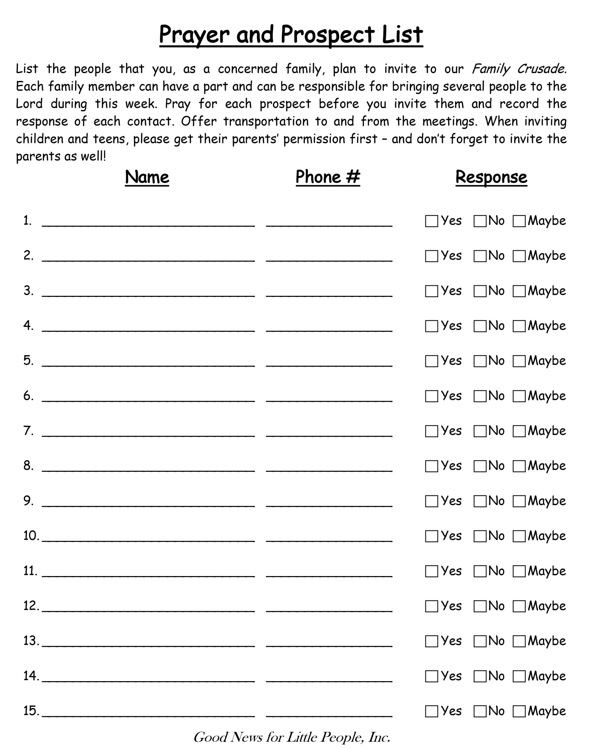 Encourage your people to bring their completed Prayer and Prospect Lists to church on the Sunday morning of Family Crusade – August 2nd. During the invitation time, they can bring their list to the altar for a special time of prayer.